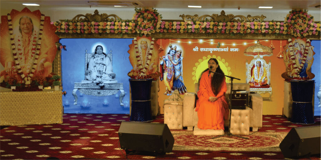 पश्चात् गुरु महिमा सम्बंधित संकीर्तन करवाते हुए श्रीधरी दीदी ने समस्त विश्व समुदाय को जगद्गुरुत्तम दिवस की बधाई दी। गुरुपूजन इत्यादि कार्यक्रम हुए एवं भोजन प्रसादी के साथ कार्यक्रम सम्पन्न हुआ।