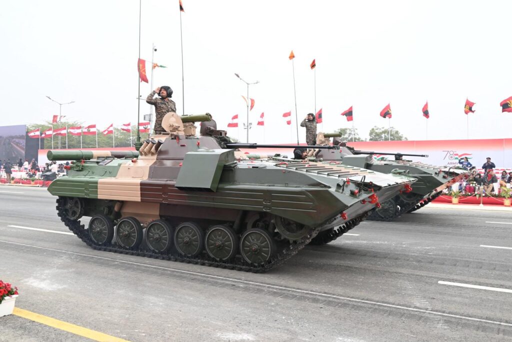 - आधुनिक हथियारों का प्रदर्शन: परेड में T-90 टैंक, ब्रह्मोस मिसाइल, M-777 होवित्जर तोप और निगरानी ड्रोन के साथ-साथ ‘ऑपरेशन सिंदूर’ में इस्तेमाल हुए सैन्य उपकरणों को प्रदर्शित किया गया।