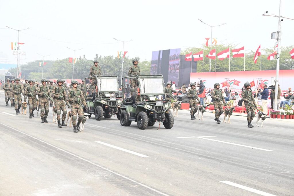 - रोबोटिक डॉग्स और कैनाइन वॉरियर्स: पहली बार सेना के जांबाज डॉग स्क्वायड के साथ अत्याधुनिक ‘रोबोटिक डॉग्स’ (Multi-Utility Legged Equipment) ने भी मार्च किया, जो आधुनिक युद्धक तकनीक का प्रमाण है।