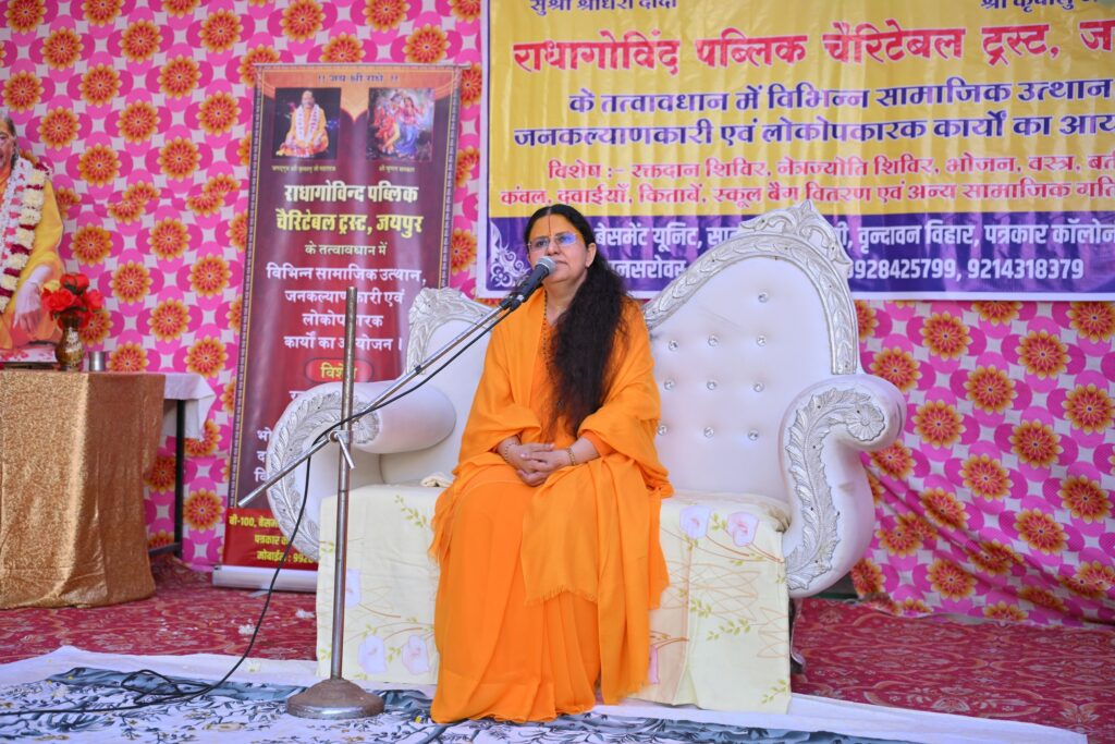 यह ज्ञात हो कि ‘राधागोविंद पब्लिक चैरिटेबल ट्रस्ट’ की स्थापना सन 2008 में जगद्गुरु श्री कृपालु जी महाराज की प्रेरणा से उनकी प्रचारिका सुश्री श्रीधरी दीदी द्वारा की गयी थी। अपने 17 वर्षों के कार्यकाल में अब तक इस संस्था ने जयपुर में अपनी विशिष्ट पहचान बना ली है। हमारी ट्रस्ट समाज के सभी वर्गों ,सभी जाति ,सभी समुदाय के लोगों के लिये है। ये ट्रस्ट समाज के सभी वर्गों से जुड़कर यथाशक्ति उनकी सहायतार्थ कार्यरत है। हमारी ट्रस्ट अनेक संस्थाओं से अल्पकाल में ही जुड़ गयी है। समय-समय पर इन संस्थाओं को उनकी आवश्यकतानुसार वस्तुएँ उपलब्ध कराई जाती है। समाज के निर्धन वर्ग को समय समय पर आवश्यकतानुसार कभी वस्त्र वितरण,बर्तन,अनाज़, कभी कम्बल इत्यादि वितरण किए जाते हैं। निर्धन एवं जरूरतमंद बच्चों को समय समय पर किताबें,कॉपियाँ,स्टेशनरी किट,स्कूल बैग, इन्सुलेटेड पानी की बोतल,टिफ़िन, स्कूल फर्नीचर इत्यादि जरूरत का समान भी दिया जाता है। बड़ी आपदा जैसे Corona महामारी इत्यादि में भी ट्रस्ट द्वारा मुख्यमंत्री राहत कोष, दैनिक भास्कर फाउंडेशन जैसी संस्थाओं को यथाशक्ति आर्थिक सहायता प्रदान की गयी थी।