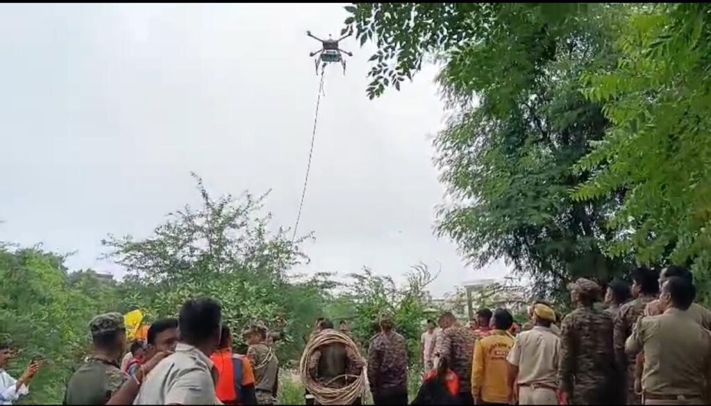जयपुर, रविवार, 07 सितम्बर 2025: भारतीय सेना ने एक अनूठी और अभिनव विधि से ड्रोन का उपयोग करते हुए , 6 सितंबर 2025 को उदयपुर में आयद नदी के उफनते पानी से एक व्यक्ति को सफलतापूर्वक बचाकर एक हादसे को टाल दिया।