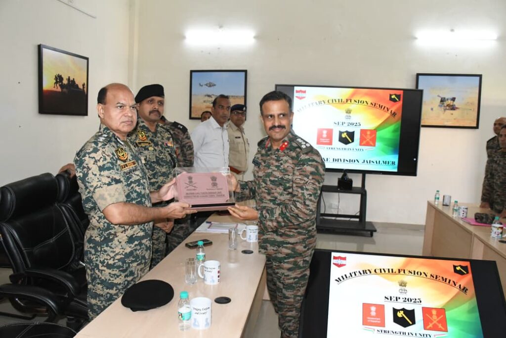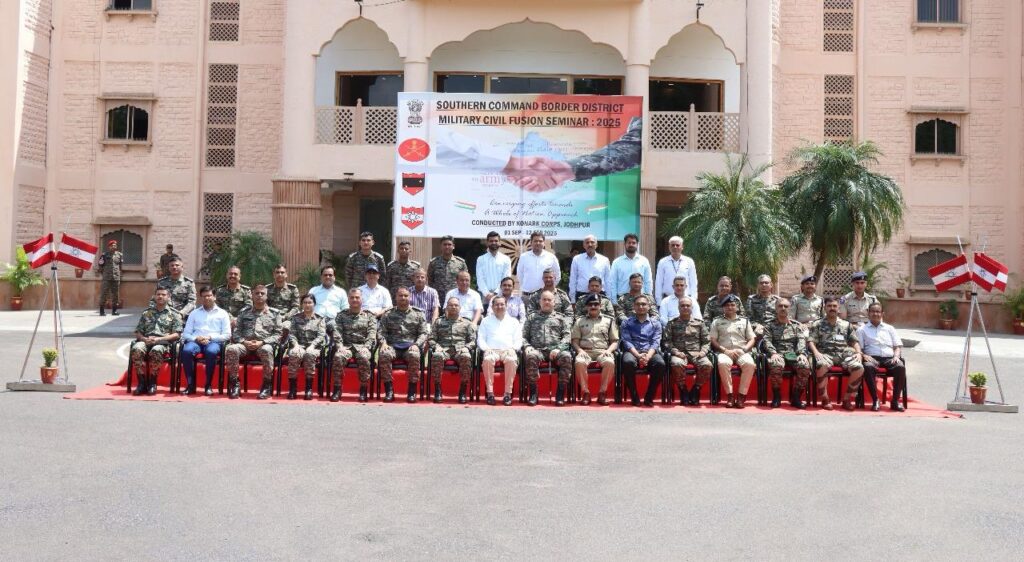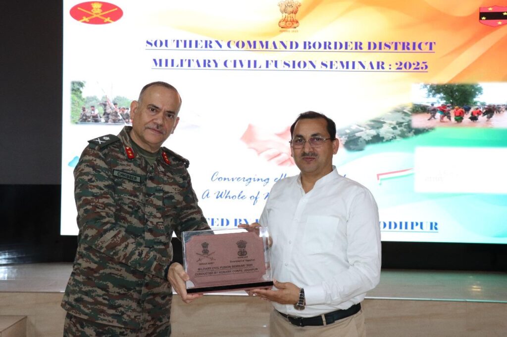 Jaipur, Sunday 14 Sep 2025 : कोणार्क कोर ने ‘दक्षिणी कमान सीमांत जिला मिलिट्री सिविल फ्यूज़न संगोष्ठी’ का आयोजन 01 सितम्बर 2025 से 12 सितम्बर 2025 तक राजस्थान के तीन जिलों जोधपुर, जैसलमेर और बाड़मेर में किया |