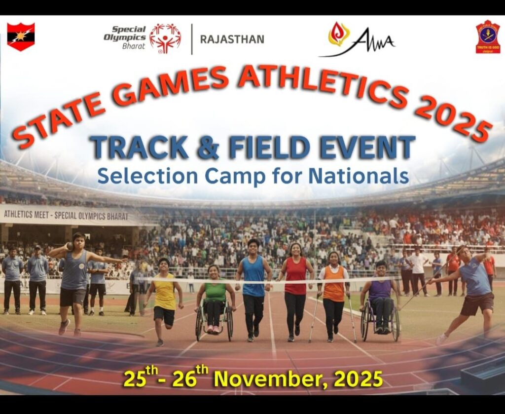 समावेशी और करुणामय समाज निर्माण की दिशा में महत्वपूर्ण कदम बढ़ाते हुए सप्त शक्ति आर्मी वुमन वेलफेयर एसोसिएशन (AWWA) और स्पेशल ओलंपिक भारत के संयुक्त तत्वावधान में 25 एवं 26 नवंबर 2025 को जयपुर सैन्य स्टेशन में स्टेट गेम्स एथलेटिक्स 2025 का आयोजन किया जा रहा है। यह पहल विशेष बौद्धिक क्षमताओं वाले युवा खिलाड़ियों को प्रोत्साहित करने की दिशा में दोनों संगठनों का एक सार्थक प्रयास है।
